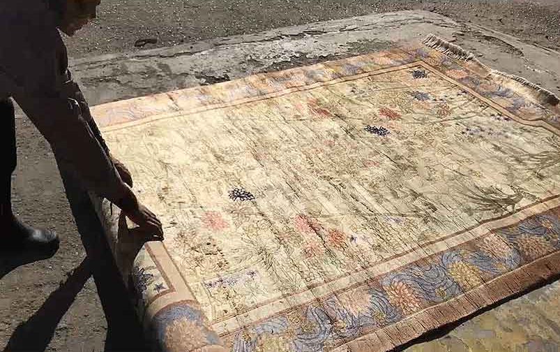 Pour certains tapis en soie et tapis anciens qui ont des couleurs dites « naturelles », avant de procéder au nettoyage il est nécessaire de fixer la couleur pour éviter tout dégorgement.